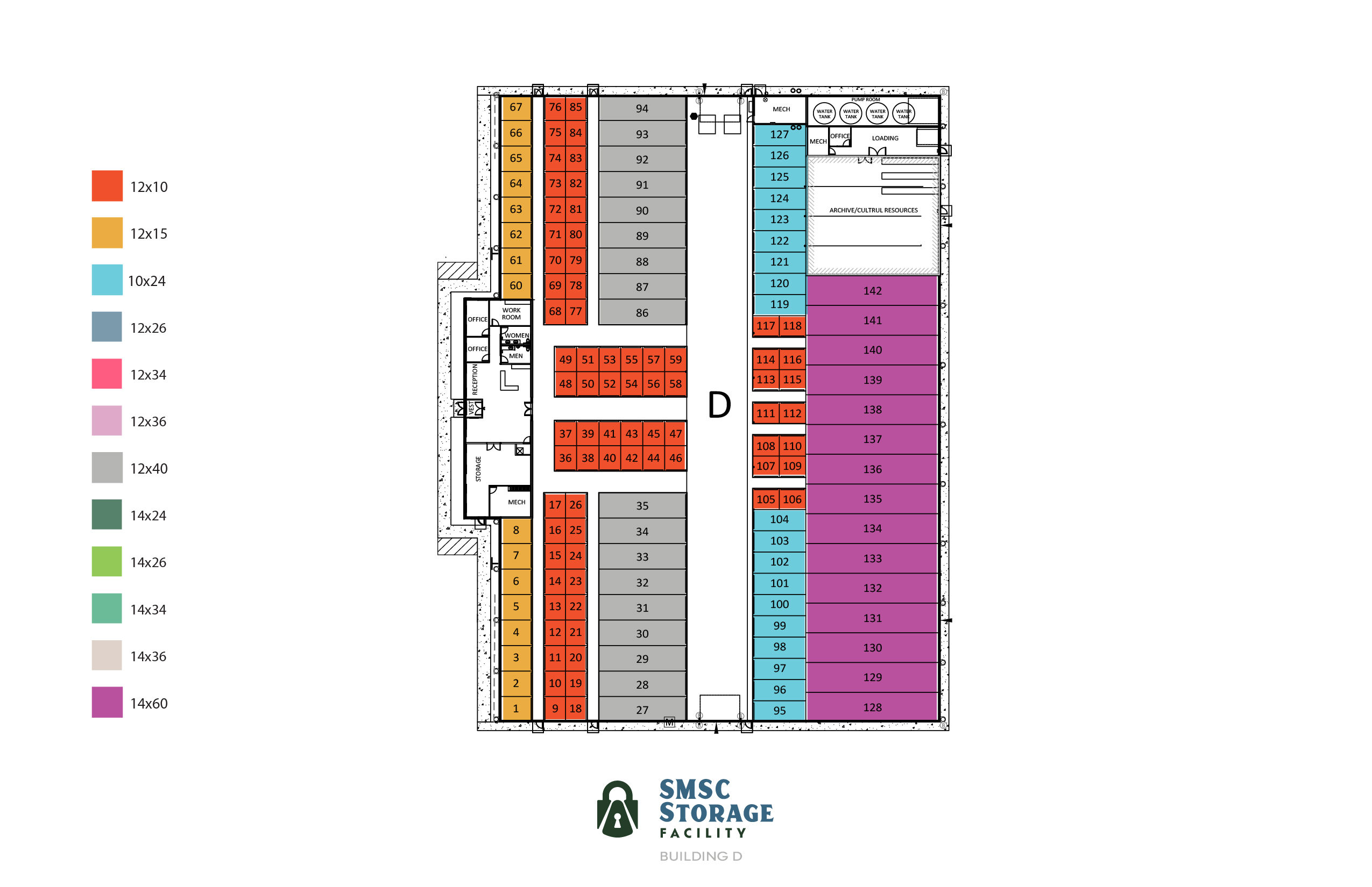 Our facility features flexible sizes ranging from 10′ x 12′ up to 14′ x 60′. However, larger units are rarely available due to high demand. Scroll down to view currently available units.